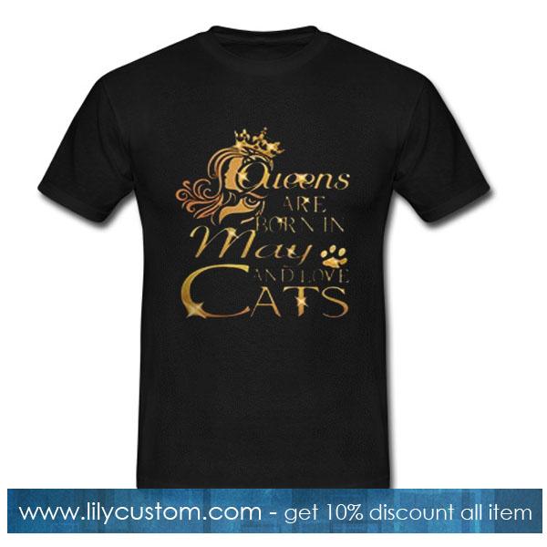 Queens are born in May and love cats T-Shirt